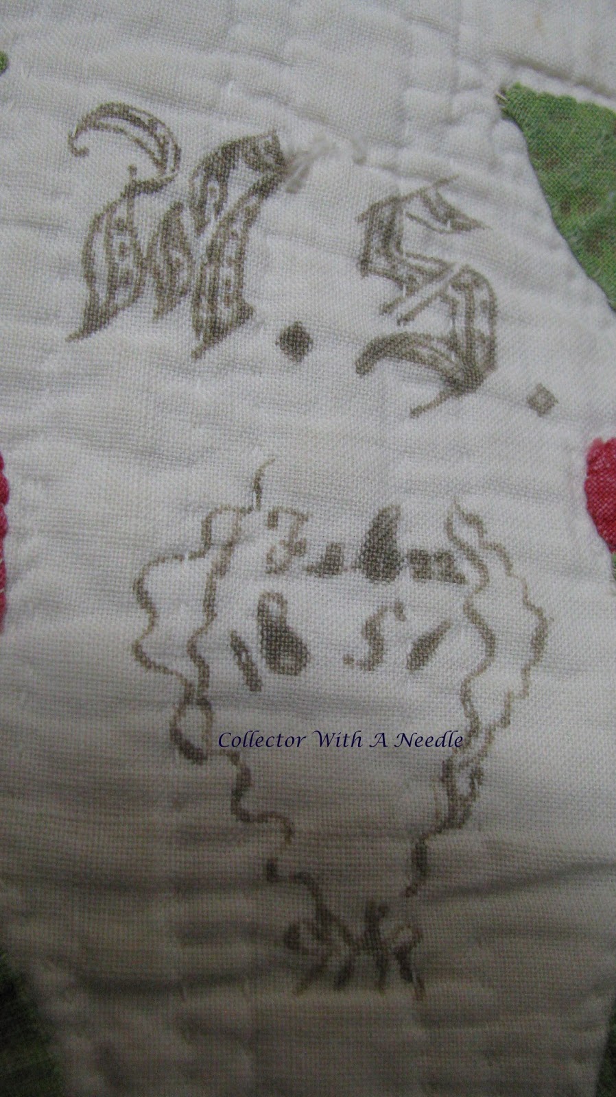 It is always fun to solve a mystery with friends. The antique Noah and Matilda Quilt has two inked blocks that were puzzles.
